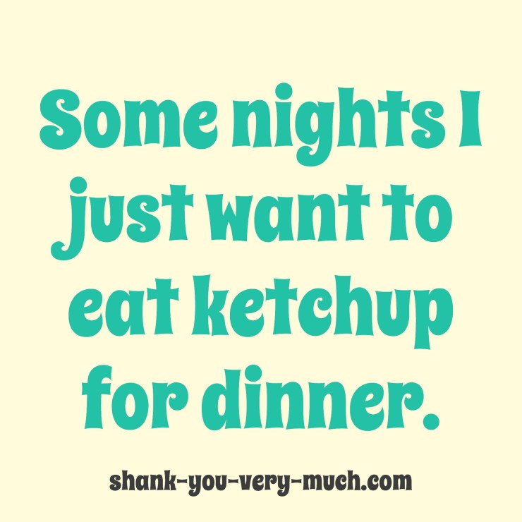 I need psychiatric care just so I can say to a group “Hello, my name is Heather and I am addicting to dipping. Sauces.” I can’t forget to add that last part or they’ll make me go to a tobacco support group instead. But that may be a good thing since I could get the whole group off tobacco and onto ketchup. Ketchup has to be healthier than tobacco.