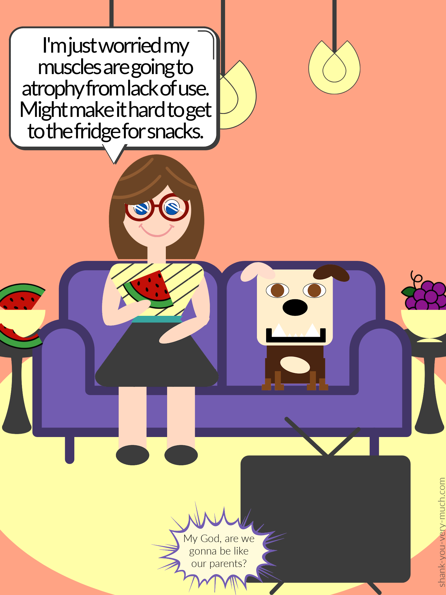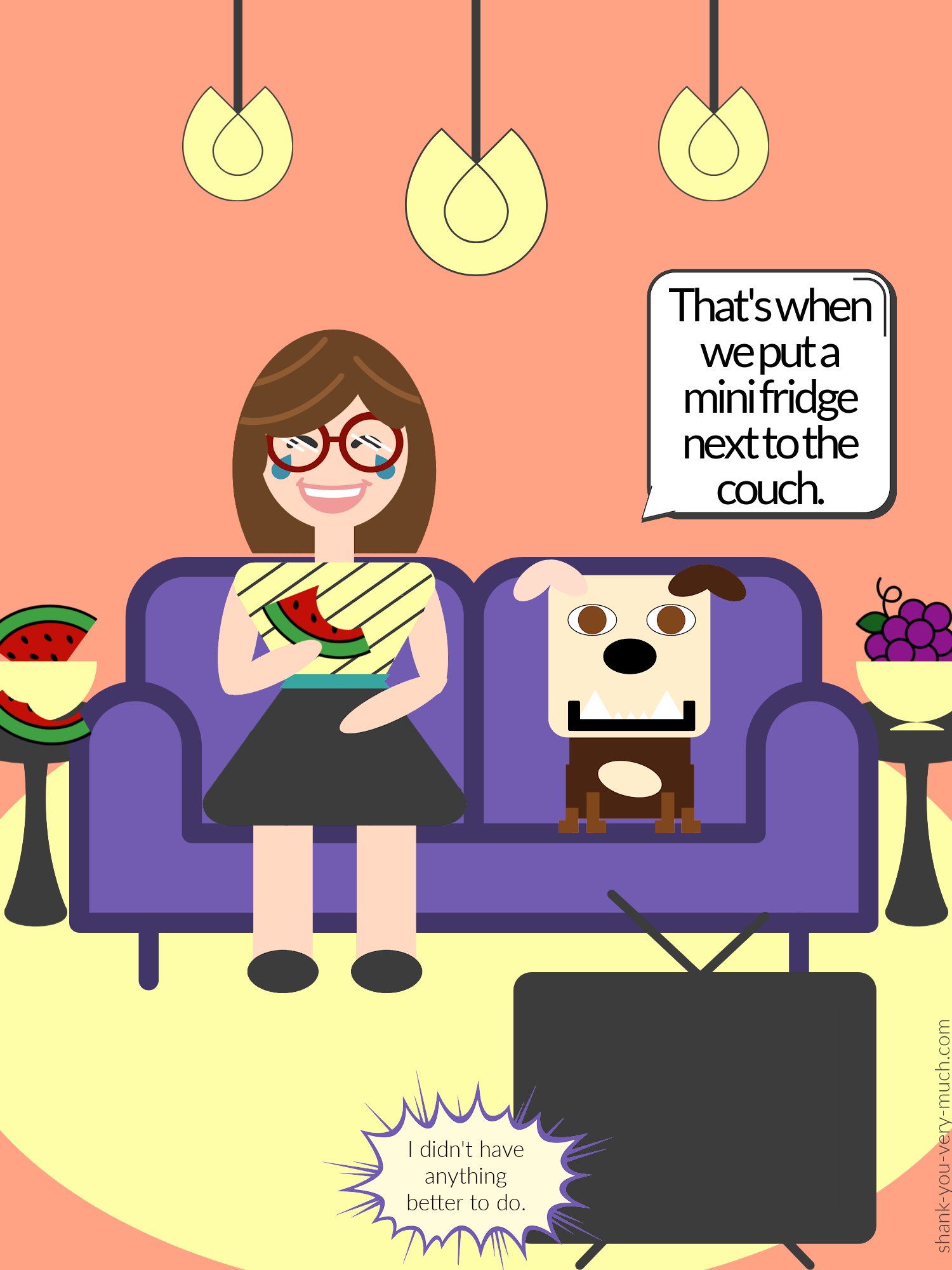 I like to utilize shapes to create my characters. I like them to feel a bit stiff and robotic in contrast to the topics I cover and our personalities.